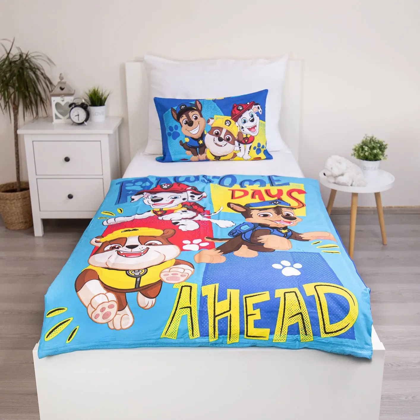 Pościel Psi Patrol „PP579” baby to energetyczny komplet z motywem ulubionych bohaterów serialu Psi Patrol. Dynamiczny wzór „Paws Ahead” w niebieskiej kolorystyce idealnie pasuje do pokoju małego fana przygód i akcji.